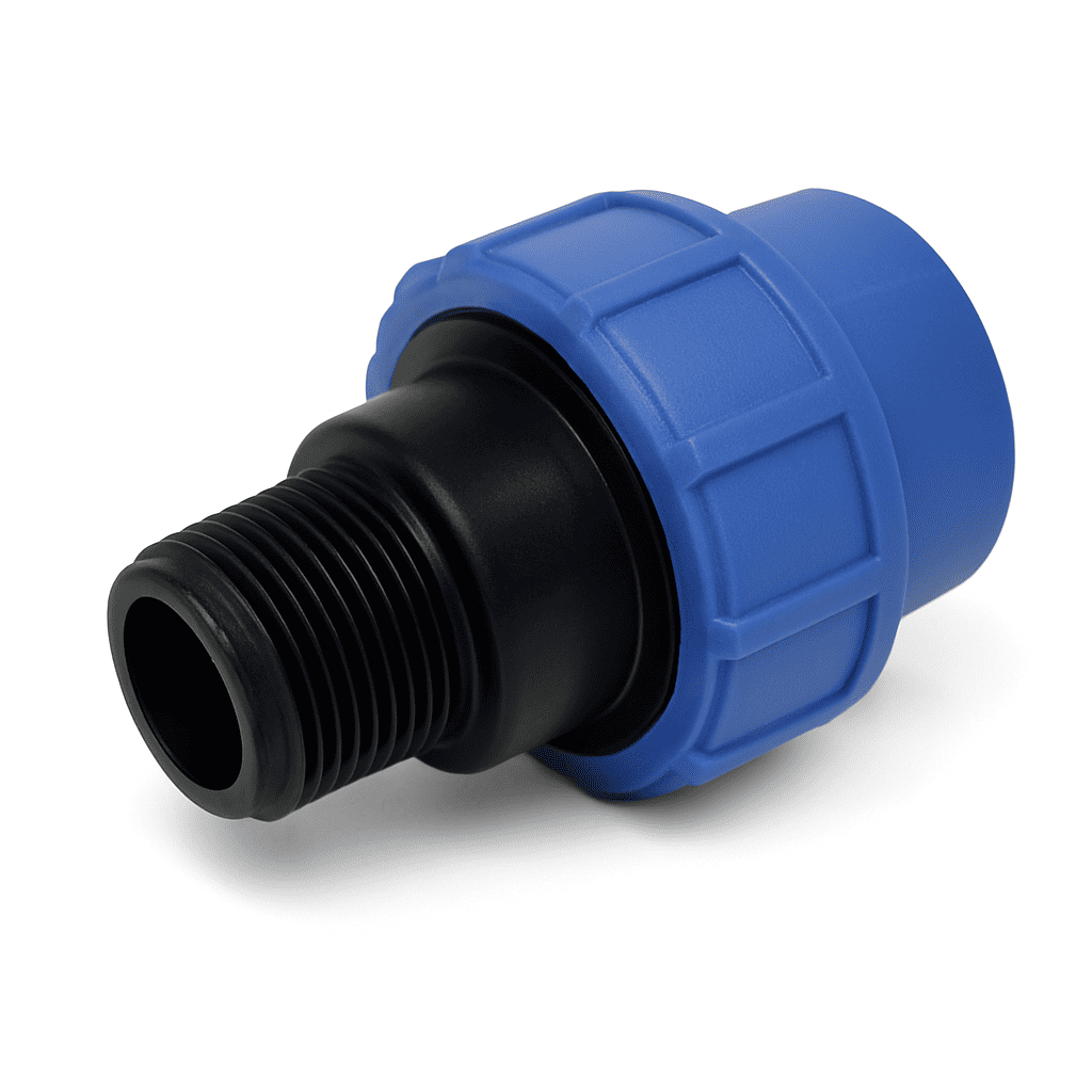 Racordul de compresiune cu filet exterior PN16 este ideal pentru conexiuni rapide și sigure între țevi din polietilenă (PE) și elemente filetate. Este folosit frecvent în instalații de alimentare cu apă, sisteme de irigații și rețele industriale.